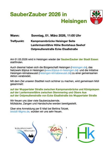 SauberZauber 2026 in Heisingen Auch wir sind wieder dabei wenn es darum geht Heisingen vom Müll zu befreien. Komm dazu und mach mit: